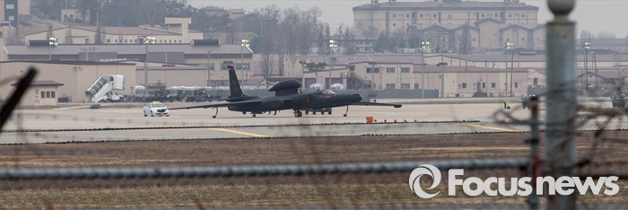 (평택=포커스뉴스) 역대 최대 규모의 한·미연합훈련(키리졸브연습·독수리훈련·쌍용훈련)이 실시되고 있는 8일 오전 경기도 평택시 주한미군 오산공군기지에서 U-2S 고고도정찰기가 이륙 준비를 하고 있다.