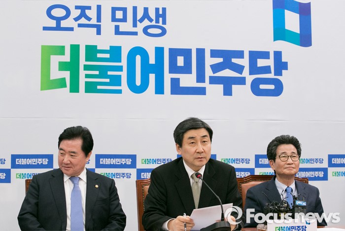 (서울=포커스뉴스) 이종걸(가운데) 더불어민주당 원내대표가 8일 오전 서울 여의도 국회에서 열린 원내대책회의에 참석해 모두발언을 하고 있다.