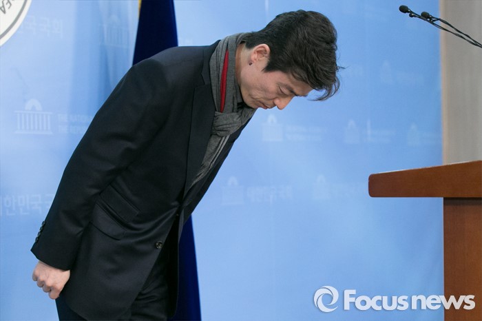 (서울=포커스뉴스) 송호창 더불어민주당 의원이 8일 오전 서울 여의도 국회 정론관에서 거취표명 기자회견을 마친 뒤, 인사하고 있다. 이 자리에서 송 의원은 "당의 공천배제 결정을 받아들이고, 총선 불출마를 결심했다"고 밝혔다.