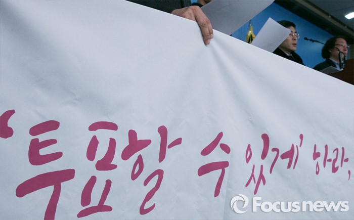 (서울=포커스뉴스) 8일 오전 서울 여의도 국회 정론관에서 야권의 단합과 2016년 총선 승리를 위한 수도권연대 회원들이 발족 및 야권 단일화를 촉구하는 기자회견을 하고 있다.