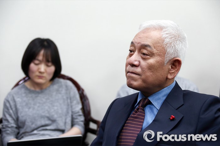 (서울=포커스뉴스) 김한길 국민의당 상임선대위원장이 8일 오후 서울 여의도 국회 의원회관 집무실에서 기자간담회를 통해 현안에 대한 입장을 밝히던 중, 생각에 잠겨 있다.