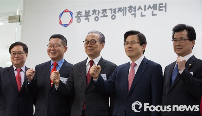 (청주=포커스뉴스) 황교안 국무총리가 8일 오후 충북 청주시 청원구 오창읍 충북창조경제혁신센터를 방문, 내빈들과 파이팅을 외치며 기념촬영하고 있다.