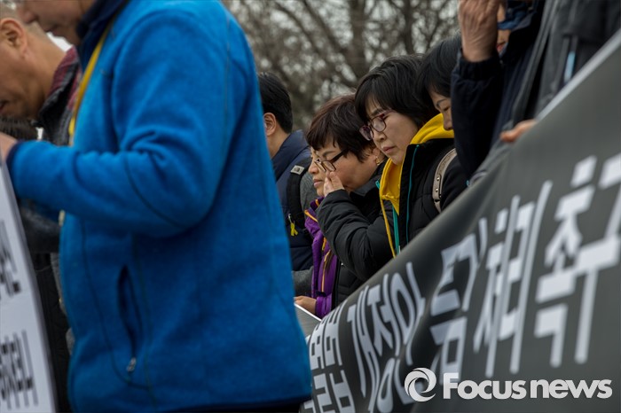 (서울=포커스뉴스) 8일 오후 서울 영등포구 국회 앞에서 열린 '19대 국회 세월호 특별법 개정안 특검 처리 촉구 기자회견'에 참석한 4.16가족협의회 및 관련 시민단체 관계자들이 정부에 세월호 참사 특검처리 약속 이행을 촉구 하고 있다.