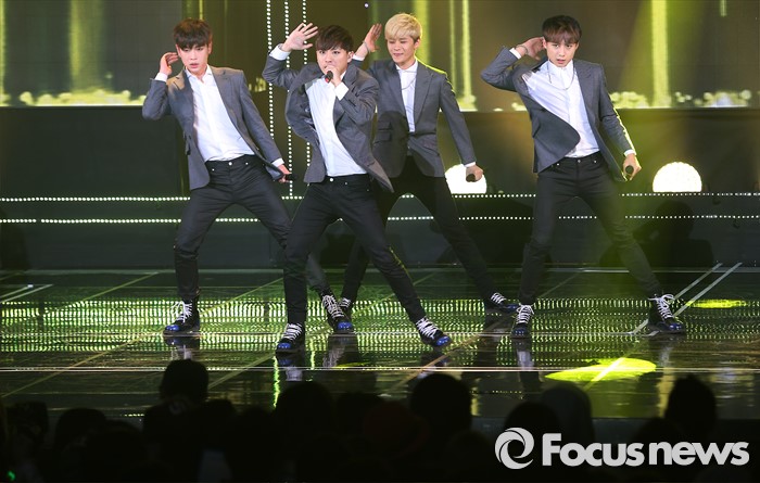 (서울=포커스뉴스) 8일 오후 서울 마포구 SBS프리즘 타워에서 '2016 더쇼 62회' 생방송 촬영 현장에서 아이돌 그룹 APL이 '이러다 죽겠어'의 무대를 선보이고 있다.