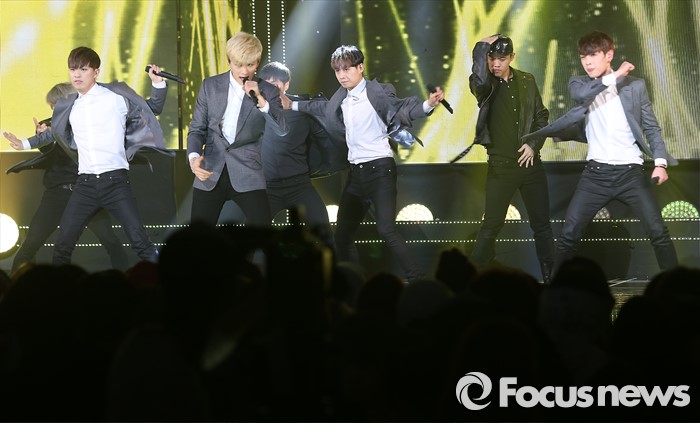 (서울=포커스뉴스) 8일 오후 서울 마포구 SBS프리즘 타워에서 '2016 더쇼 62회' 생방송 촬영 현장에서 아이돌 그룹 APL이 '이러다 죽겠어'의 무대를 선보이고 있다.