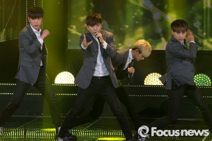 (서울=포커스뉴스) 8일 오후 서울 마포구 SBS프리즘 타워에서 열린 '2016 더쇼 62회' 생방송 촬영 현장에 아이돌그룹 APL가 무대를 선보이고 있다.