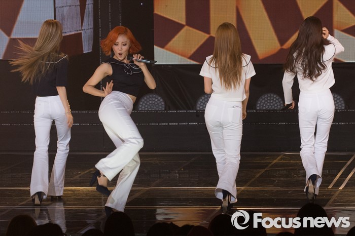 (서울=포커스뉴스) 8일 오후 서울 마포구 SBS프리즘 타워에서 열린 '2016 더쇼 62회' 생방송 촬영 현장에서 걸그룹 마마무가 '넌 is 뭔들'의 무대를 선보이고 있다.
