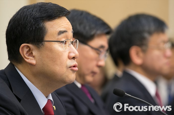 (서울=포커스뉴스) 9일 오전 서울 여의도 국회 귀빈식당에서 열린 경제활성화를 위한 민·당·정 간담회에 참석한 김정훈(왼쪽) 새누리당 정책위의장이 모두발언을 하고 있다.