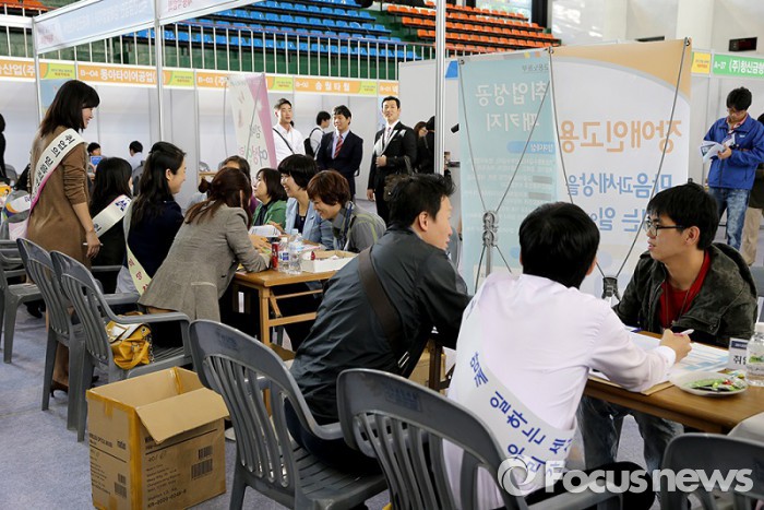 노형욱 재정관리관은 "심층평가 연구팀과는 별도로 관계부처와 관련기관이 참여하는 범부처 관계부처 태스크포스를 통해 개편내용이 조속히 반영될 수 있도록 하겠다"고 말했다.채용박람회 사진. 한용 기자