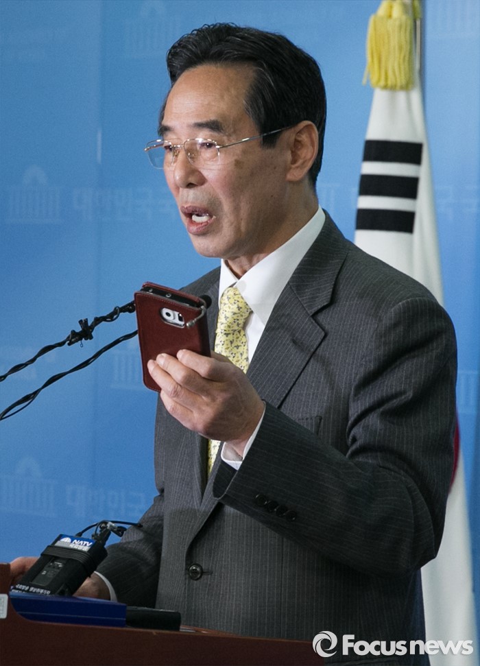 (서울=포커스뉴스) 홍창선 더불어민주당 공천관리위원장이 9일 오전 서울 여의도 국회 정론관에서 20대 총선 1차 경선지역과 관련 브리핑을 하고 있다. 홍 위원장은 이날 브리핑 중 취재관행을 바꾸기 위한 언론인과 대화를 하던 중 일부 항의를 받았다.