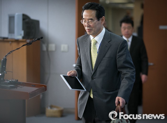 (서울=포커스뉴스) 홍창선 더불어민주당 공천관리위원장이 9일 오전 서울 여의도 국회 정론관에서 20대 총선 1차 경선지역과 관련 브리핑을 위해 입장하고 있다. 홍 위원장은 이날 브리핑 중 취재관행을 바꾸기 위한 언론인과 대화를 하던 중 일부 항의를 받았다.
