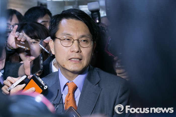 (서울=포커스뉴스) 김무성 새누리당 대표를 향한 욕설로 당내 파문을 일으킨 윤상현 의원이 9일 오전 서울 여의도 새누리당 대표최고위원실 앞 로비에서 기자들의 질문에 답변하고 있다. 전날 윤 의원은 전화를 통해 김 대표를 거론하며 욕설한 사실이 언론에 공개됐으며, 이날 김 대표에게 면담을 요청했으나 거절됐다.
