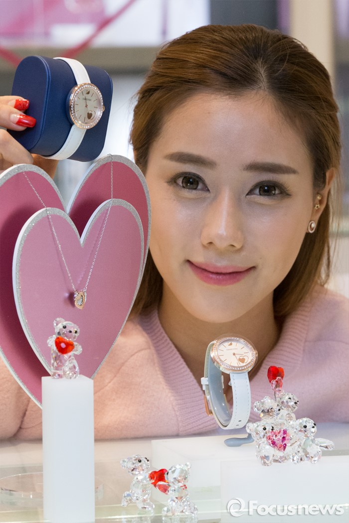 (서울=포커스뉴스) 9일 오전 중구 롯데백화점 본점에서 스와로브스키(SWAROVSKI)의 '화이트데이 컬렉션'을 모델이 선보이고 있다. 제품은 디어(Dear) 네크리스와 뱅글, 블로우(Blow) 이어링, 데이타임(Daytime) 워치로 구성되어 있다.