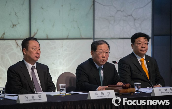 (서울=포커스뉴스) 9일 오전 서울 중구 플라자호텔에서 열린 '2016 경제단체협의회 정기총회'에 참석한 박병원 한국경영자총협회장이 발언을 하고 있다.