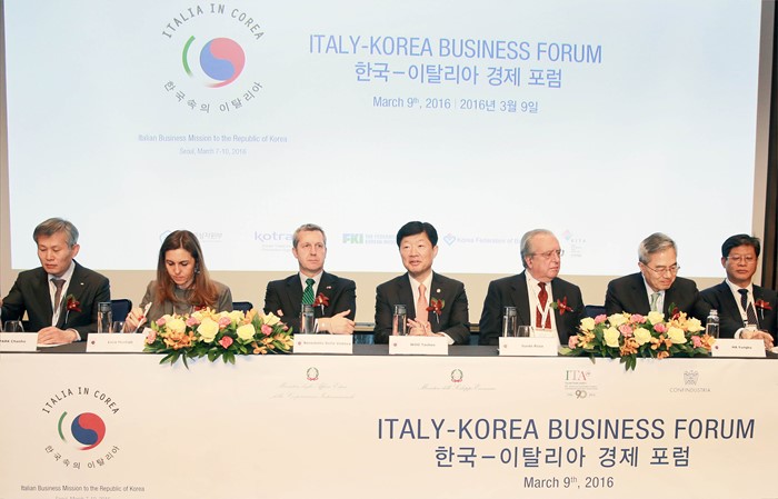 (서울=포커스뉴스) 우태희 산업통상자원부 2차관이 9일 오전 서울 종로구 포시즌호텔 그랜드볼룸에서 열린 한-이탈리아 비즈니스 포럼에 참석해 자리아 앉아 있다. <사진제공=산업통상자원부>