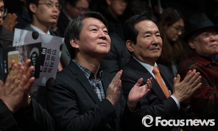 (서울=포커스뉴스) 안철수 국민의당 상임공동대표가 9일 오후 서울 종로구 아름다운극장에서 열린 인공지능과 바둑 심포지움 콘서트 '이세돌-알파고 바둑 대국'에 참석해 정세균 더불어민주당 의원과 관람하고 있다.
