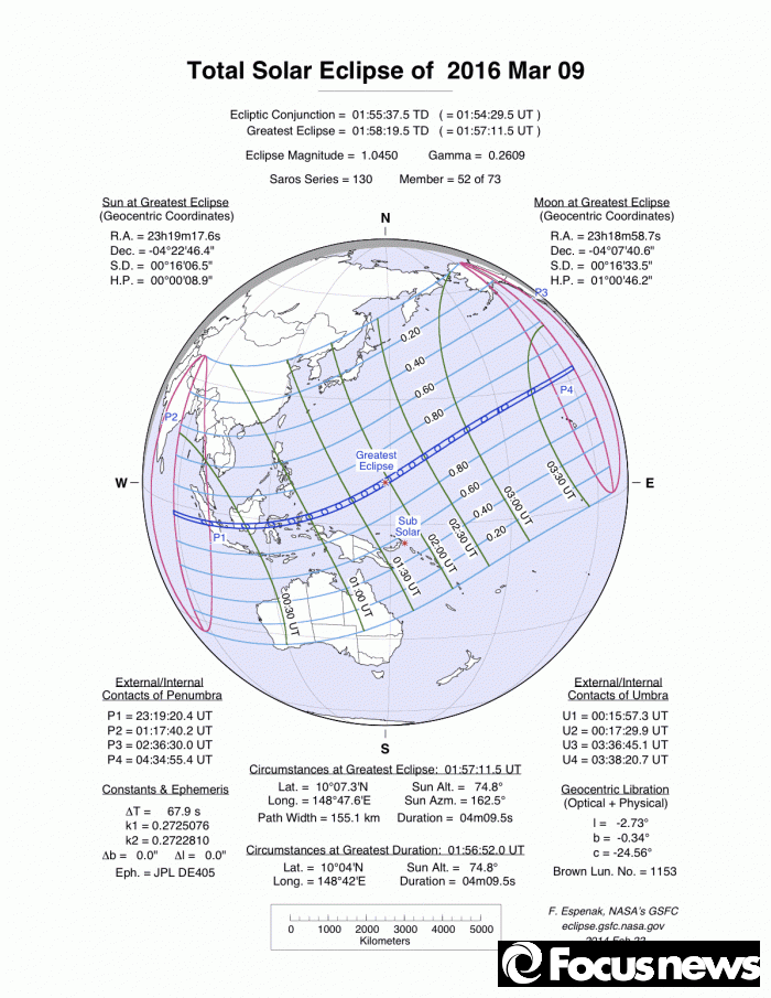 | △ 인도네시아 2016.3.9. 개기일식 NASA 자료 |