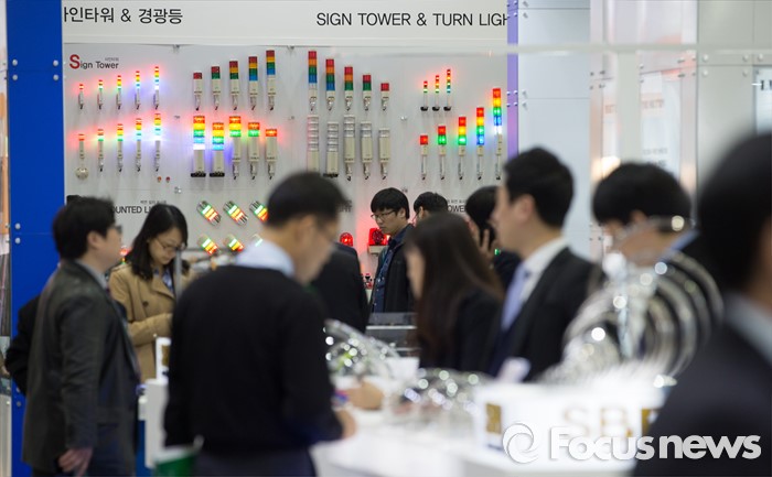 (서울=포커스뉴스) 9일 오후 서울 강남구 코엑스에서 열린 '오토메이션 월드 2016’에서 관람객들이 전시된 다양한 제품들을 살펴보고 있다.