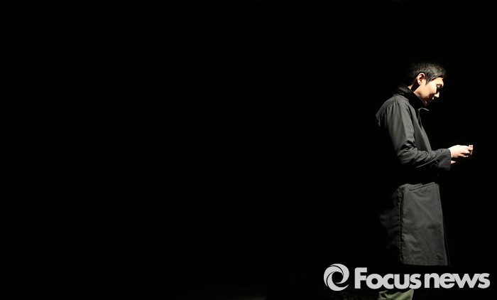 (서울=포커스뉴스) 9일 오후 서울 종로구 선돌극장에서 열린 연극 '백중사 이야기' 프레스콜 행사에 참석한 배우 여욱환이 주요장면을 시연하고 있다.