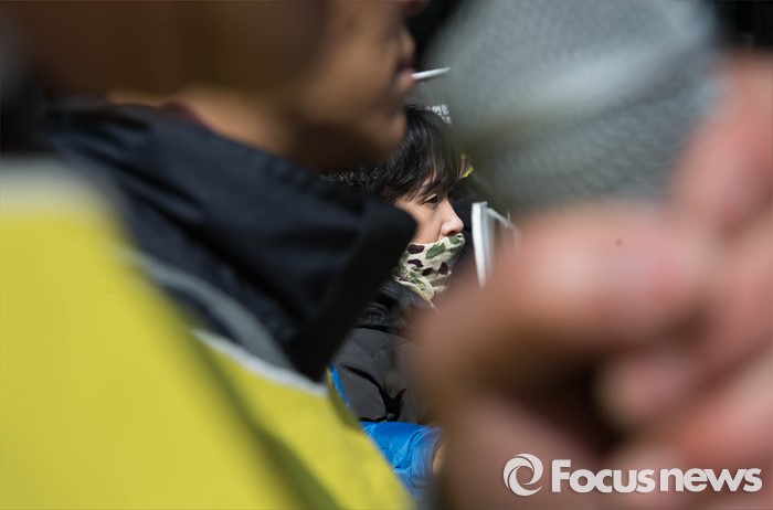 (서울=포커스뉴스) 9일 오전 서울 종로구 SK서린빌딩 앞에서 환경보건시민센터 회원들이 가습기살균제 사용 피해 책임을 요구하며 SK케미칼 전ㆍ현직 임원들의 처벌을 촉구하고 있다.