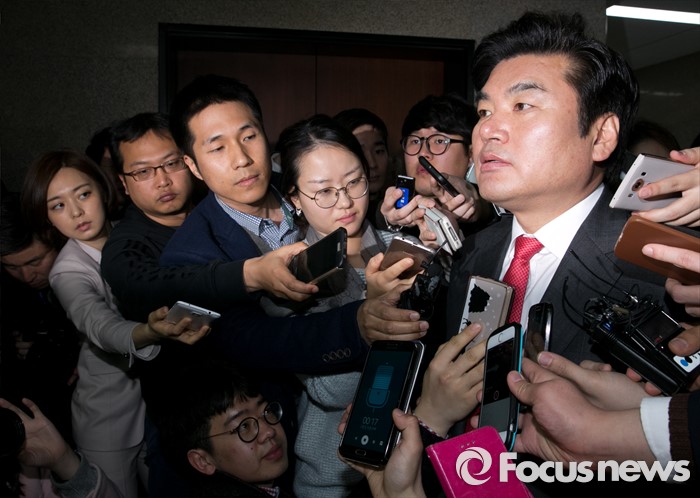 | △ 윤상현 의원 관련 취재진 질문 답하는 원유철 |