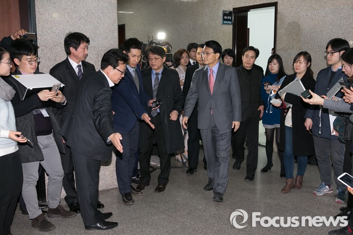 (서울=포커스뉴스) '김무성 욕설 녹취록'으로 논란을 일으킨 윤상현 새누리당 의원이 10일 오전 서울 여의도 국회에서 비공개 최고위원회의에 참석한 뒤 나서고 있다. 전날 김무성 대표와의 면담이 불발된 윤 의원은 이날 오전 김 대표의 자택을 방문해 사과했다고 전했다.
