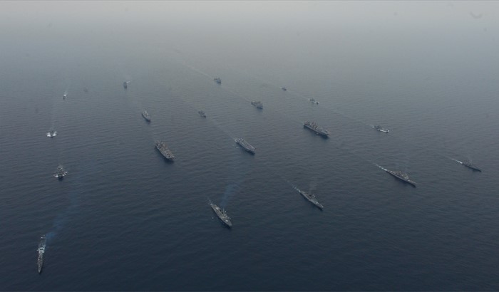 | △ 호송기동 하는 한·미 해군 함정들 |