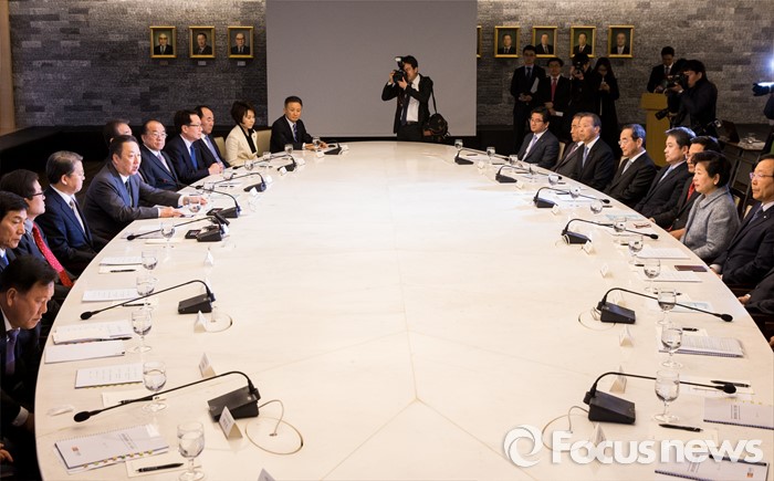 (서울=포커스뉴스) 10일 오전 서울 중구 대한상공회의소에서 열린 국세청장 초청 전국상의 회장단 정책간담회에 참석한 박용만 대한상의 회장이 인사말을 하고 있다.