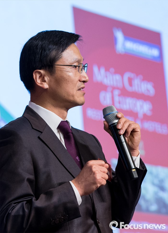 (서울=포커스뉴스) 10일 오전 서울 종로구 포시즌스 호텔에서 열린 미쉐린 가이드(미슐랭 가이드) 2017 서울편 발간 기자간담회에 참석한 김보형 미쉐린코리아 사장이 인사말을 하고 있다.