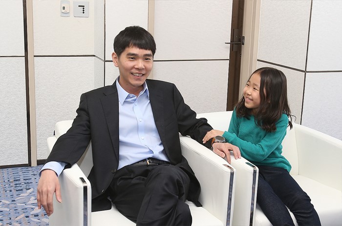 (서울=포커스뉴스) 바둑기사 이세돌 9단이 10일 오후 서울 종로구 포시즌스호텔에서 구글 딥마인드 챌린지 매치, 인공지능 바둑프로그램 알파고와의 두번째 대국 전 딸 혜림양과 함께 웃고 있다. <사진제공=구글>