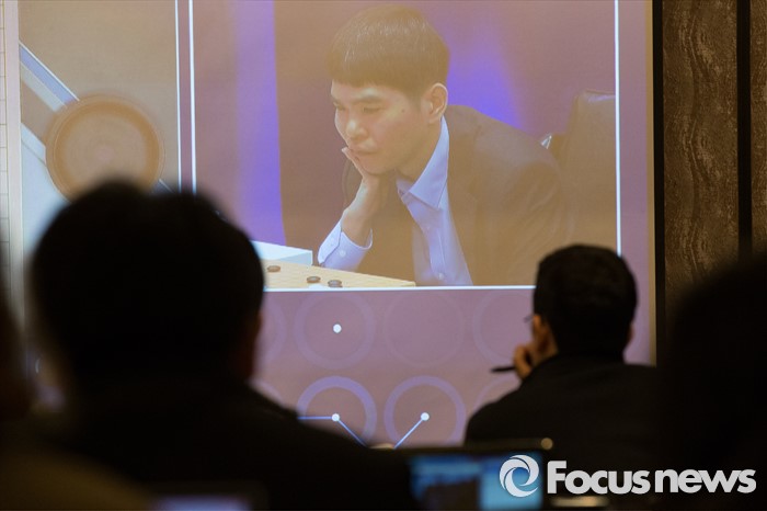 (서울=포커스뉴스) 10일 오후 서울 종로구 포시즌스호텔 기자실에서 취재진들이 이세돌 9단과 구글 인공지능 알파고의 '구글 딥마인드 챌린지 매치' 2차 대국을 지켜보고 있다.