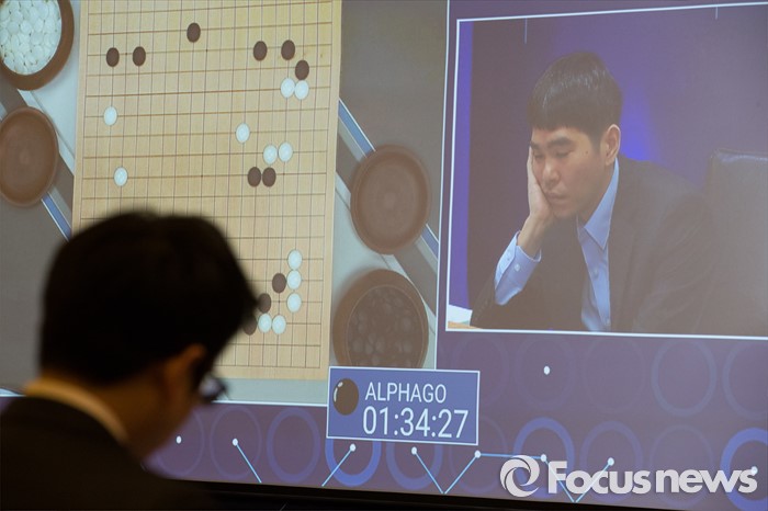 (서울=포커스뉴스) 10일 오후 서울 종로구 포시즌스호텔 기자실에서 취재진들이 이세돌 9단과 구글 인공지능 알파고의 '구글 딥마인드 챌린지 매치' 2차 대국을 지켜보고 있다.