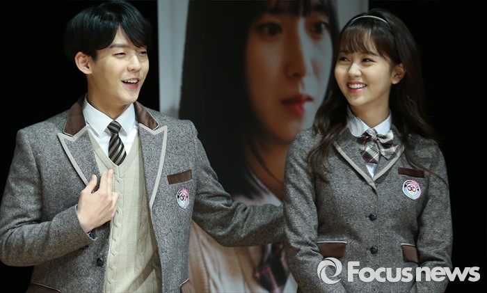 (서울=포커스뉴스) 10일 오후 서울 강남구 일지아트홀에서 열린 웹드라마 '악몽선생' 제작발표회에 참석한 배우 이민혁(왼족)과 김소현이 포토타임을 갖고 있다.
