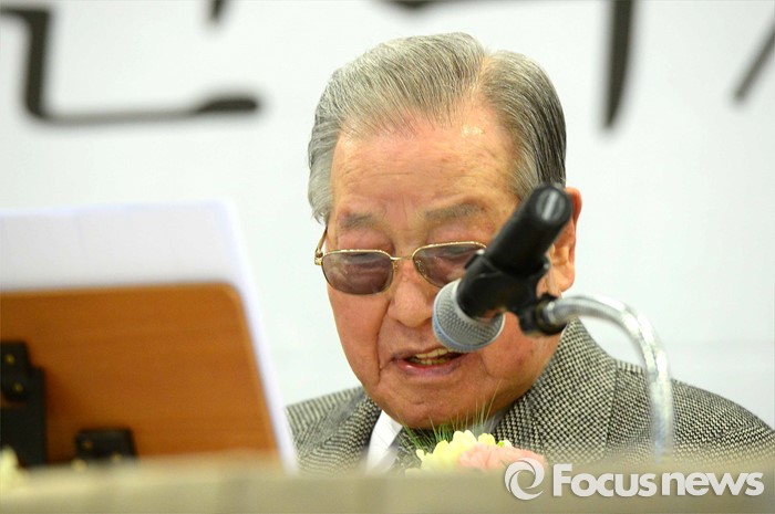 (서울=포커스뉴스) 김종필 전 국무총리가 10일 오후 서울 종로구 세종문화회관 세종홀에서 열린 자신의 '김종필 증언록' 출판기념회에 참석해 인사말을 하고 있다.