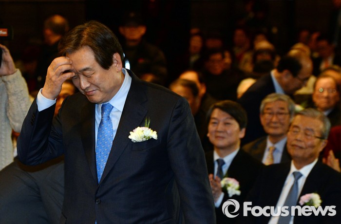 (서울=포커스뉴스) 김무성 새누리당 대표가 10일 오후 서울 종로구 세종문화회관 세종홀에서 열린 자신의 '김종필 증언록' 출판기념회에 참석해 축사를 위해 단상으로 향하고 있다. 왼쪽부터 김 대표, 안철수 국민의당 상임공동대표, 김종인 더불어민주당 비대위 대표.