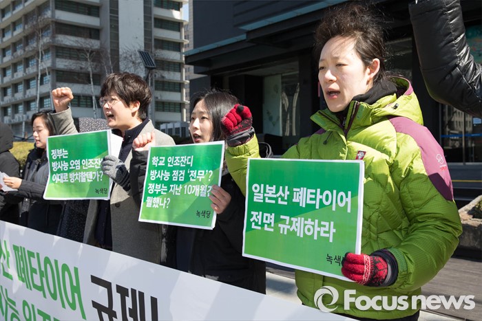 이유진 녹색당 공동운영위원장은 "지금은 학교뿐 아니라 전사회적으로 방사능 오염물질에 따른 위험이 존재하고 있는 상황"이라며 "일본산 폐타이어와 건축자재, 하수슬러지, 소각재 등 폐기물이 한국으로 유입되고 있다"고 주장했다.