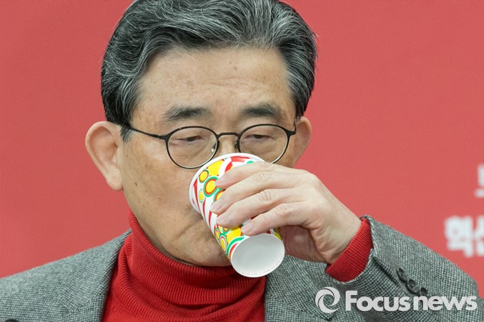 | △ 목 축이는 이한구 공관위원장 |