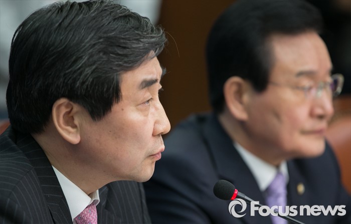 (서울=포커스뉴스) 이종걸 더불어민주당 원내대표가 11일 오전 서울 여의도 국회에서 열린 비대위-선대위 연석회의에 참석해 발언하고 있다.