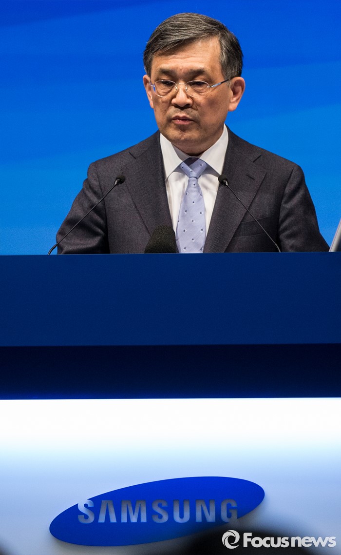 (서울=포커스뉴스) 11일 오전 서울 서초구 삼성전자 본사 다목적홀에서 열린 47기 정기주주총회에 참석한 권오현 이사회 의장(대표이사 부회장)이 인사말을 하고 있다.