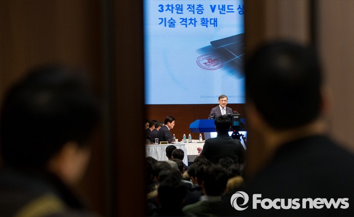(서울=포커스뉴스) 11일 오전 서울 서초구 삼성전자 본사 다목적홀에서 열린 47기 정기주주총회에 참석한 권오현 이사회 의장(대표이사 부회장)이 DS사업 경영현황을 소개하고 있다.