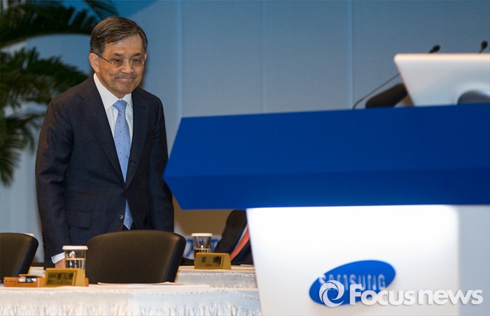 (서울=포커스뉴스) 11일 오전 서울 서초구 삼성전자 본사 다목적홀에서 열린 47기 정기주주총회에 권오현 이사회 의장(대표이사 부회장)이 참석하고 있다.
