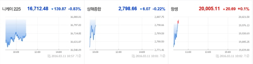 일본니케이225지수는 이날 오전 10시32분(현지시간) 현재 전일 대비 1.27%(214.33포인트) 떨어진 16638.02에 거래 중이다.