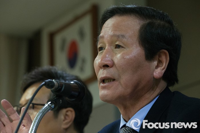 (서울=포커스뉴스) 11일 오전 서울 영등포구 중소기업중앙회 중회의실에서 정기섭 회장을 비롯한 임원들이 북한당국의 개성공단 자산 청산통보에 대한 입주기업의 입장을 발표하고 있다.