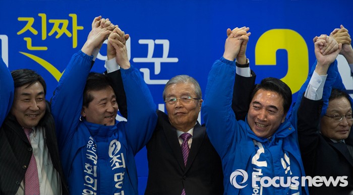| △ 김종인, 이종걸, 이해찬과 함께 결의 다지는 더민주 박수현 의원 |