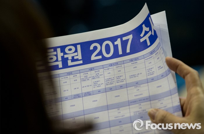 (서울=포커스뉴스) 12일 오후 서울 성동구 한양대학교 올림픽체육관에서 열린 '2017학년도 대학입시설명회'에 참석한 한 학부형이 주요 대학 배치참고표를 보고 있다.