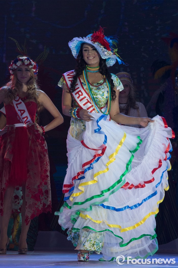 (동관/중국=포커스뉴스)중국 광동성 동관에서 12일 열린 제27회 미시즈월드 미인대회에서 모리셔스의 참가자가 의상을 입고 포즈를 취하고 있다.