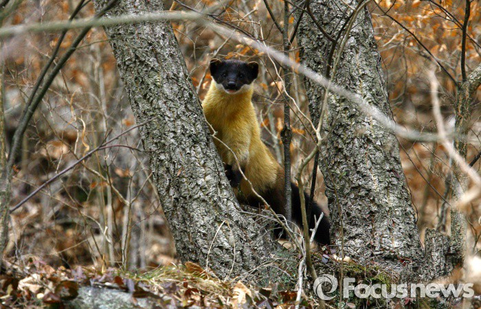(순천=포커스뉴스) 멸종위기종 담비가 13일 전남 순천에서 발견됐다. 조류연구가 이진희박사가 수리부엉이를 관찰하다가 우연히 목격한 담비는 사람을 주시하다가 쏜살같이 숲속으로 사라졌다.<사진제공=이진희>