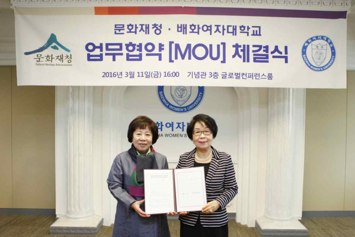 문화재청은 지난 11일 서울 종로구 배화여자대학교 기념관에서 '문화재 보존관리 및 육‧연구에 관한 공동협력체계 구축 업무협약'을 체결했다고 14일 밝혔다.