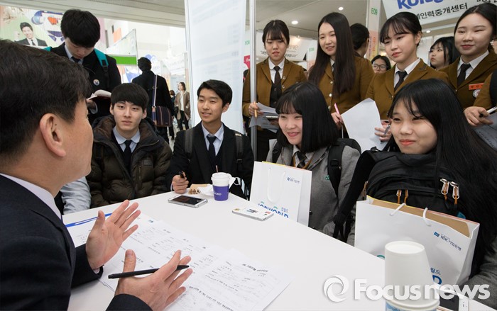 (대전=포커스뉴스) 14일 오전 대전시청에서 열린 청년희망로드쇼 대전·충남권 우수기업 채용박람회에서 많은 학생들이 면접정보를 교육받고 있다.