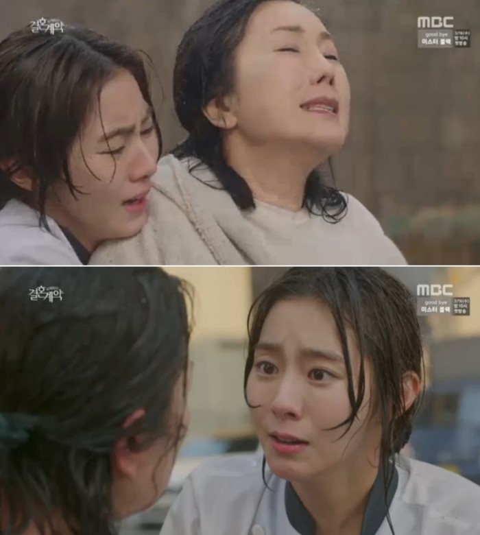 드라마 '결혼계약'은 오로지 돈만을 좇아 살아온 남자 한지훈(이서진 분)과 삶의 벼랑에서 절망하던 여자 강혜수(유이 분)가 만나 진정한 사랑을 깨닫는 과정을 이야기한다.MBC 주말드라마 '결혼계약'이 동시간대 시청률 1위에 올랐다. 사진은 4회 방송 중 강혜수(유이 분·왼쪽)와 오미란(이휘향 분)의 오열 장면 캡쳐. <사진제공=MBC>